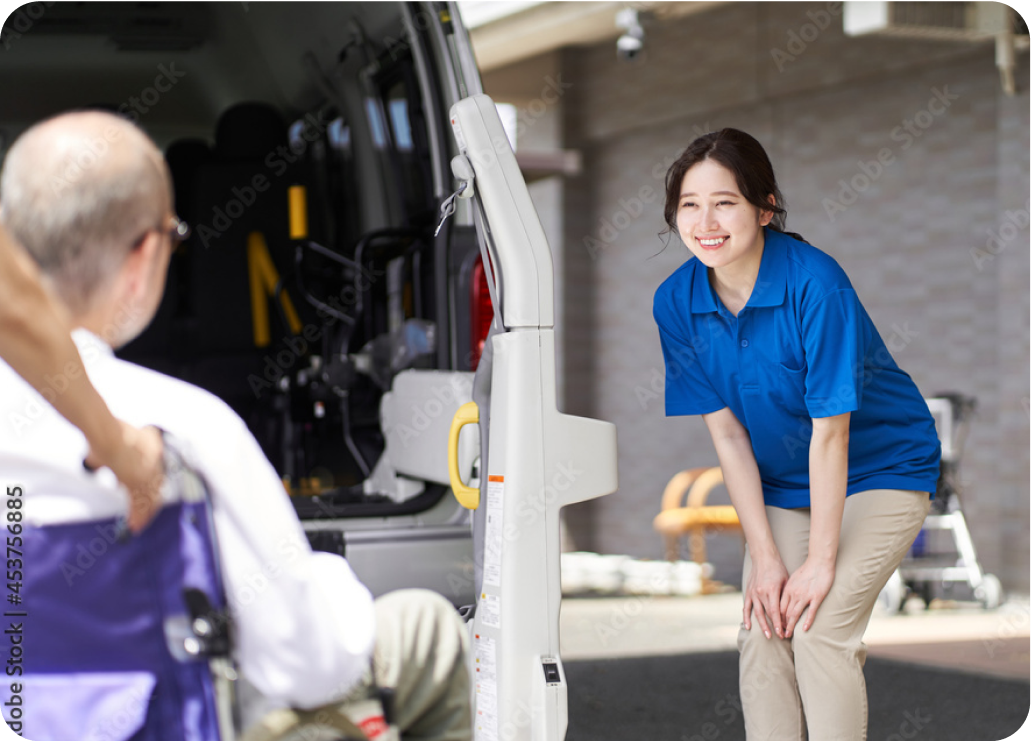 送迎時は必要に応じてベッドまで職員がうかがい移動します。